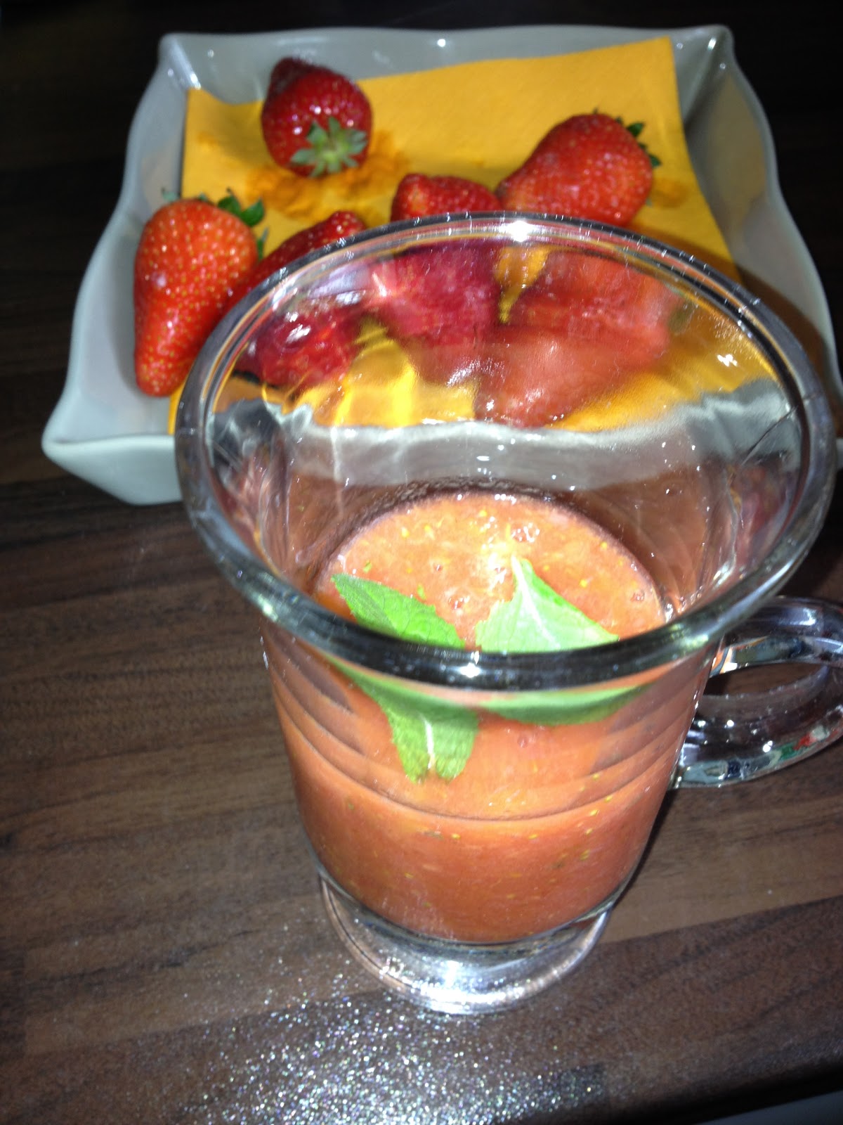 Alles einfach im Mixer zerkleinern. Evt. noch etwas kaltes Wasser hinzugeben, für diejenigen, die es flüssiger mögen. Fertig ist der lecker-erfrischende Sommerdrink.