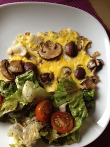 Variante: Am Ende etwas Käse über das Omelette streuen. Deckel drauf und schmelzen lassen.