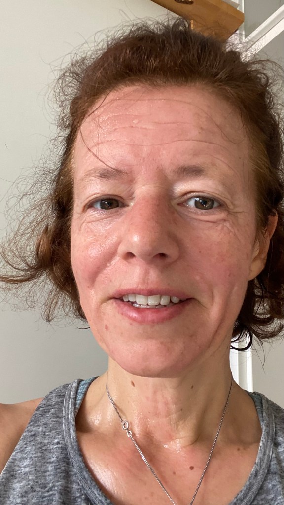 PS: Dies ein Bild von mir, Claudi, der Trainerin, nach der Sporteinheit – verschwitzt, aber glücklich